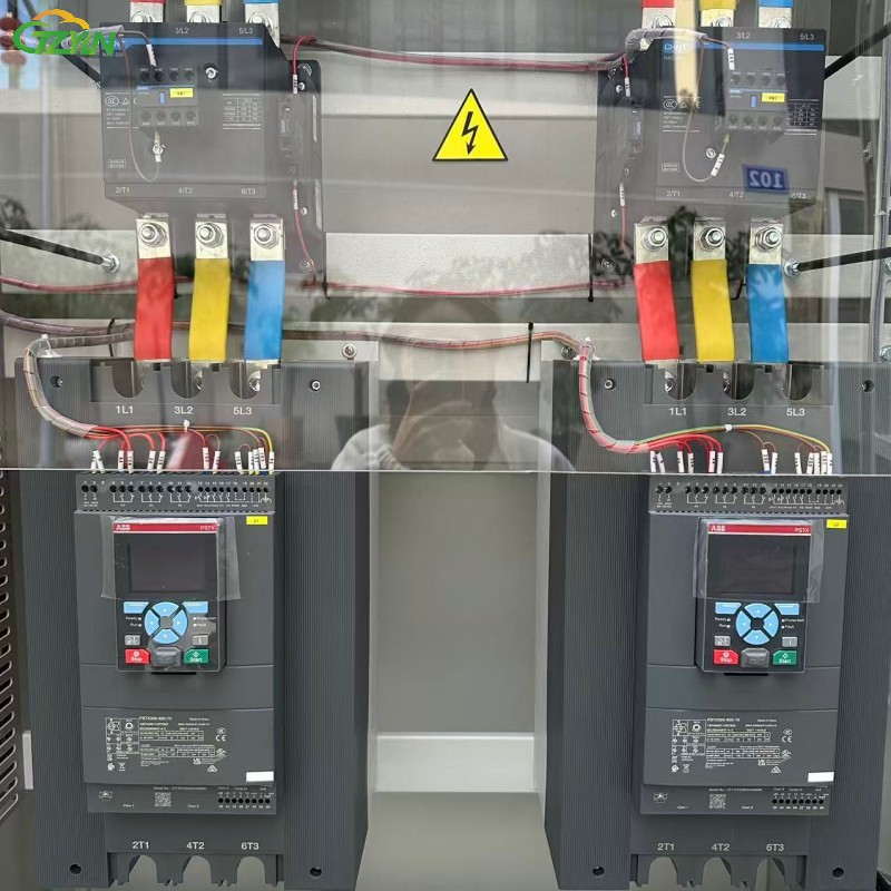 As a leading Heavy-duty soft starter control, this cabinet is equipped with the ABB PSTX series high-power soft starter—specifically calibrated for 160kW motors. Its advanced voltage ramp start technology reduces inrush current to just 2-3x the rated value (compared to 6-8x with direct-on-line starting), eliminating grid voltage sags and preventing damage to motor windings and mechanical transmissions. The built-in soft stop function ensures gradual deceleration, minimizing shock to belts, gears, and bearings, and extending the lifespan of your entire equipment ecosystem.